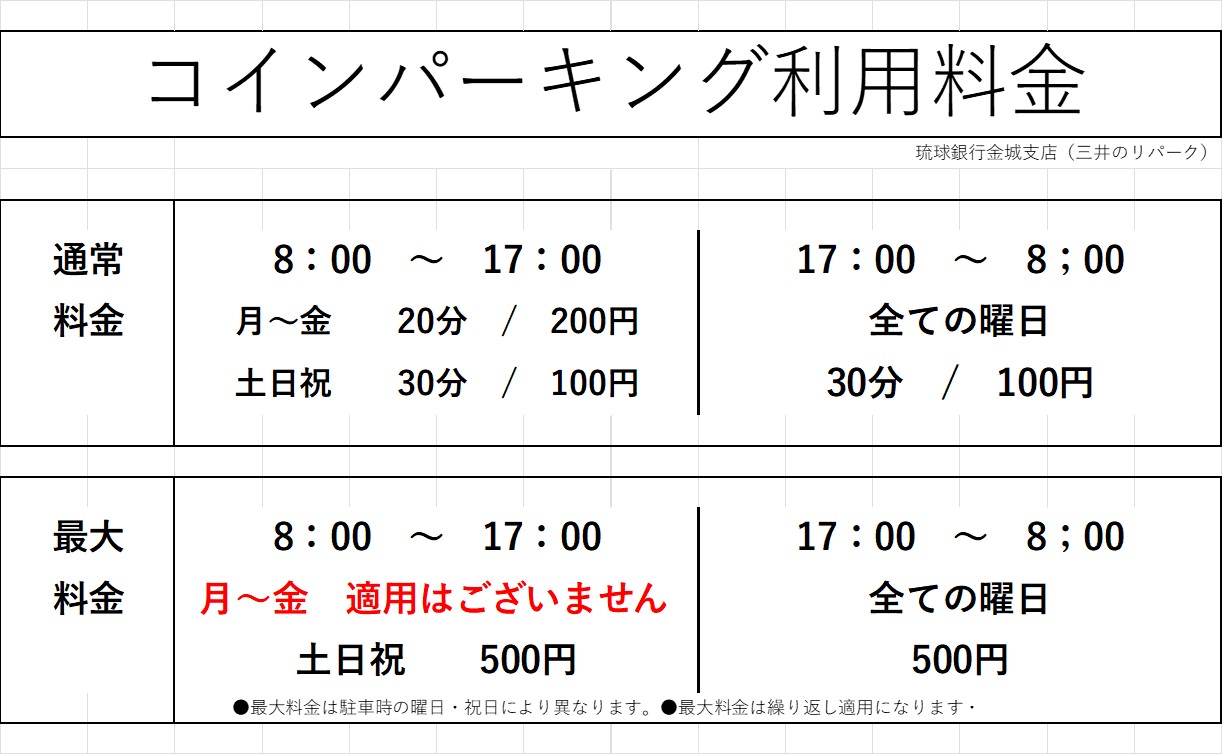 ⑥コインパーキングが満車の場合は、イオン那覇店の平置き駐車場をご利用ください